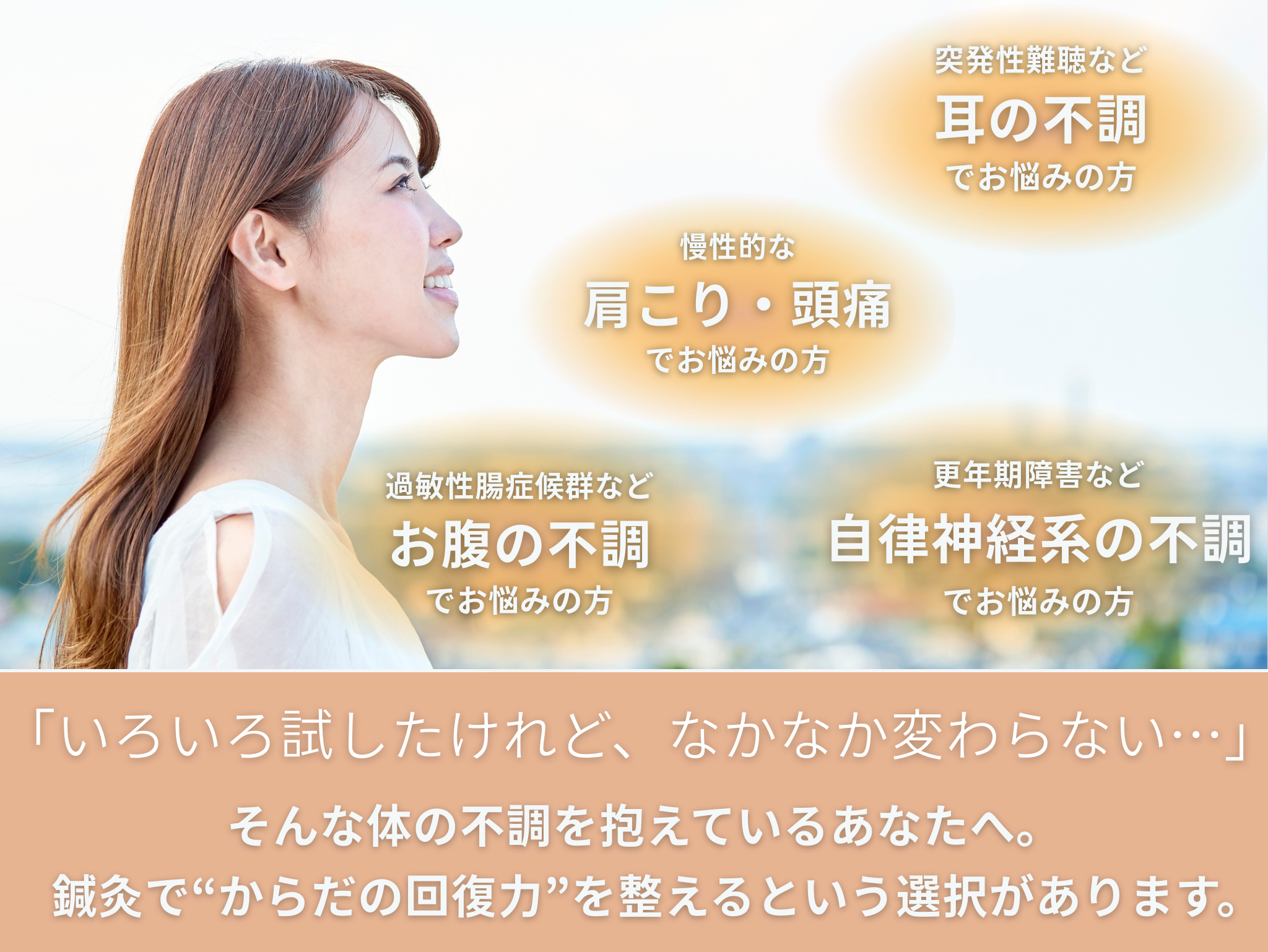 「肩の不調」はもちろん、「突発性難聴」「過敏性腸症候群」に対しても、鍼による施術はとても有効です。
